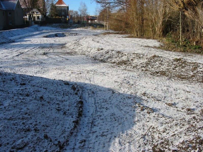 Der Weg “Mittelsteg” und die dahinter liegende Kleingartensparte ist nun durch den angelegten ca. 1,00 m hohen Damm geschützt. Zur Regenwasserableitung wurden in den Weg eine Kastenrinne sowie drei Durchlässe durch den Hochwasserschutzdamm eingebaut.